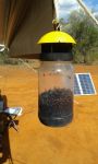 This image was taken at Curraweena Rest Area between Cobar & Broken Hill. After hanging this fly trap on our awning it took only a few hours for it to become filled to the brim with a seething mass of flies & maggots. Worst of all there were still more flying around camp which eventually drove us inside. They were crawlimg in our ears, up our noses & in our mouths despite using spray repellents like Aerogard, Bush-Mate & Off. Nothing worked!