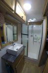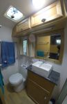 I've put some pics of our rig below. The setup should give us plenty of comfort and independence on the big trips. It's got a full kitchen with a 3-way frig, large L-shaped lounge, a QS bed and 2 adult bunks, an ensuite with separate shower and toilet, front loader washing machine and a heap of mod cons. Total water capacity is 350L, three quarters for drinking. There are 2 165W solar panels to charge the 2 100A AGM batteries, and I've put a gen box on the back for our 2.4 kV Yammy inverter. Reverse cycle air con, diesel heater, and plenty of fans throughout for good air flow. There's stacks of storage inside and out. There's a gas bbq outside and the hot water is either gas or electric. I've installed satellite tv for where there's no tv reception.