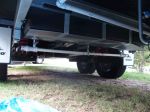 Now everything is positioned about the suspension and the ball weight is sweet. The grey water tank is mounted between the suspension wish bones, I have even incorporated "Hey Jims" LH/RH outlet system.