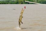 Pauline and I were thrilled to see these great creatures leaping for some meat near Darwin, but on reflection, we total disagree with the practice. Not a good thing to train these killers to seek food around boats!! We're hearing of too many attacks these days. Cheers, Bob