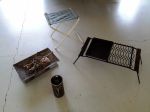 One photo shows my little luxuries, I like to take alway with or without the caravan, portable bbq, my eco billy, fold out stool and most important our small fire pit with some dry kiddling to start the fire.