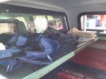 The shelf up the front is bit of a joke as in our previous ute we had a full slide out draws and we would throw light items on top of this but opted not to go this way as most gear would be in the caravan, what happen was they were having a clean up in our area, I spotted this narrow sheet of chip board at the curb, a little adjustment and now its a parcel shelf where some light stuff now live. Very handy.