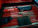 The photo with the heavy camp chairs, Engel frig, a 2nd battery in a portable box, the big plastic box has all my 4x4 gear, 20 litre back up water container, portable light weight chairs for those times you need them, a small folding table, a small fishing tackle box, air compressor, a solf bag of tools, small box of electrical gear. I am able to lay some flat things on ute floor like the axe, small crowe bar, fishing rods, cross cut saw.