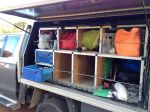 The pull out ute slide was purchased shortly after buying our new ute, the years had caught up to my weary bones and I had serious trouble putting heavy items and then retrieving things from the front of the ute area. Answer one bute ute slide.