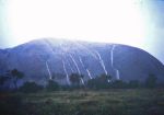 In 1987, we were on our first trip outback. Stayed at Curtin Springs and drove into Uluru. It rained overnight and when we got there, we couldn't see the rock at all. Went into the cafe and had a pie and whilst we were eating it, the clouds parted and there was the rock. Stunning. Off we went and climbed it. Nearly at the top and the clouds came back. Naturally, got drenched. Got back to the car eventually (our daughter kept getting blown off her feet by the winds, and I had to stand downwind of her with my wife upwind). Heater on full and after a while we dried out. Back to Curtin Springs. Next morning, it was still raining at Curtin Springs so we started back towards Alice, but I checked in the mirror and saw absolutely blue sky behind us. U turn and right into Uluru.