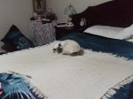 That rug on the bed looks just like the ones we could buy in New Guinea. What sort of cat is that one, Burrman ?