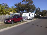 Its a small Goldstream off road van with an ATM of 2500kgs. The draw bar weight is around 285kgs. Because the WK2 stance is normally front down it used to sit level when the van was hitched. Then I went and raised the front suspension by 50cms (Dobinson coils and longer shocks) just so I don't bottom out the front valance on some very rough tracks leading to my favourite Salmon beach which changed the stance so I had to firm up the rear suspension with air bags without lifting. I hope this makes sense.