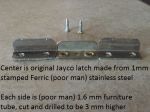 This first picture is an original draw latch, with two home made ones, 3 mm higher next to it Although the home made ones are only made from an old 19mm square 1.6 mm thick chair leg The overall short measurement of 30 mm long with sides of 13 mm makes it too hard for me to bend They should be suitable for keeping the draw closed, if the draw has sagged