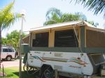 Fridge: Our camper had the vent for the fridge on the top surface of the bench. This meant that when the roof was down, the fabric could get hot. Check this. Also, do not leave a light on when the roof is down - the fabric can get very hot then where it touchs the light fitting. A 12V fan from a computer fitted with a switch will help to disperse the heat above the fridge. Mount it such that it blows out at the top. This will improve the fridge operation in hot weather as well.