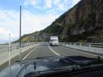 We did the picturesque coastal route from the Royal National Park, down the Grand Pacific Drive (Sea Cliff Drive) and into Wollongong from the north side. Towing a 21' caravan. No worries for us. (http://www.grandpacificdrive.com.au/)