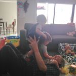 We live on our son in laws property and the two grandies visit the caravan every day (we have a rule on weekend that its 10AM). My 8 year old grand daughter delights in bouncing on my adequate stomach, it doesnt hurt as she is very light. Good bonding and I love her to bits.