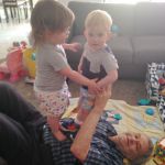 I know where you're coming from AP we have 3 of them as well, 3, 4 and 8 months. We usually mind them 1 or 2 at a time and on the rare occasion we have had all three of them here together - that's a challenge. Love them being here and wouldn't miss it for the world but sometimes you breathe a little sigh of relief when they do eventually go home with their parents. Looks like they are treating you the same way as mine treat me - like a bean bag
