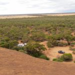 Last Easter (2016) we decided pretty last minute to go away camping and went inland to the WA Wheatbelt to Elachbutting Rock. There are fire pits, drop toilets, shade and heaps of room with easy access for all types of rigs. The rock itself is spectacular - with a Wave Rock type formation and also a tunnel - Monty's Pass - which is formed by a huge slice of the rock having sheared off at some point in the distant eons. As it rained heavily through Good Friday night there was about 30 cms of water in the tunnel so we waited until the day after to walk through it when the water had dissipated. The rock itself can be climbed - you can even drive up on top with a 4WD. The top has many Gnamma holes - which were used by Aboriginal people for drinking water.