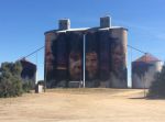Thanks for pics John. I saw the Brim silos last year and a month ago was lucky to see Guido van Helten put the finishing touches to his work at Coonalpyn (attached pics). It was fascinating watching him - he'd look at what I assume is a diagram or sketch of what he's working on that he's holding in his left hand, then do a few swishes with the spray can, then repeat the process. I'm heading west so it'll be a while before I get to see the other two.