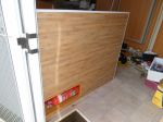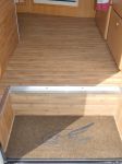 Finally put on sticky backed vinyl bamboo flooring; (found out this needs to be glued as not designed for vertical surfaces or bouncing around in a caravan).