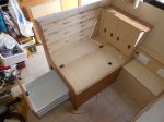 Made a covering for the mudguard & new drop flap cupboards to hold condiments & chargers etc for tablets/phones, used 9mm marine ply as it wasn't much dearer than the 12mm standard & was a much better finish & lighter.