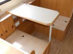 Cut original table to make double fold table, (used off-cut for a shelf), used recessed piano hinges to keep continuous join when opened up.