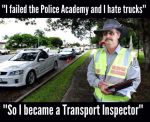 His wife was fairly high in the Dept of Transport and he managed to get a job as a "Scalie" Transport Inspector.