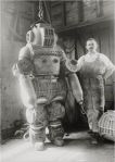 6. What a Job!..Telephone Engineer London 1920. 7. Hair Dryer Saon 1920. 8. Gibson Girl in her Corset early 1900's..caused many injuries later in life!..9.Strongwoamn balancing Pianist & Piano on her chest 1920. 10.Preparing for the nights meal 1895. 11.Knife Thrower & 'Assistant' Travelling Circus 1800's Postcard. 12. Diving suit 250Kg Patented 1911.