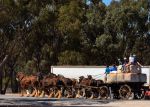 we were travelling through Barellan and seen them out along the side of the road,just good timing they are raising money for moto neuron disease, we seen them on tue the 26th Sept, this coming weekend they are having a heavy horse show , the good old days show called, the horses for the weekend event were going to carry on the carts fully laden bales,( think is wool) stacked high like they were in there day, as was only passing through probably wont be attending , but spare of the moment thing might just attend