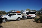 To me there is one big issue with the GCR from Laverton to the Border and thats the size of the road base stones. The road condition is generally very good leading many to drive too fast. This causes these large stones to be thown up by your tug as well as from passing vehicles at very high velosity. So take it steady slow down and keep well to the left when passing oncoming traffic or you will end up with stone damage to your rig or others passing. Its a good idea to cover the back of you tug to prevent broken rear window from stones rebounding off the trailer or van.