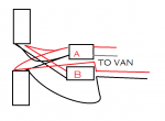 A and B are options re wiring. Both panels are currently NOT on van and were purchased to go on the van,. Tail end of plugs go to van. option B allows me to put the panels on separately (ie not connected)