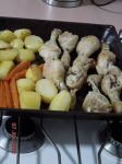 $4.59 total. lucky with chook legs marked down at our local IGA, but beats the crap out of takeaway. cheers Craig. Only in the part cooked stage. We did cheat with the gravy.