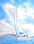 This painting in Water Colour. This is closing in on South Stradbroke nearGold Coast. Recently sailed a yacht up from Palm Beach NSW to North Stradbroke Island. Definitely harder slog when u get older !! Took 7 weeks...bad weather all the way .(liked the yacht clubs hic!!