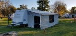 He was able to take a couple of days in lieu so we suggested Eril and I take the van an hour north to the Avoca caravan park. We left around 11 with Mark coming with me and the van with his wife and the kids. Stopped at Lexton so that Mark could have his first van towing lesson. He went well and we arrived at the park and I was able to get a drive through site, all good.