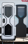 Here are pictures of the said door, the buffer stops are mounted on the door frame, where the four locking lugs locate. Two rubber stops per locking lug.