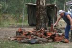 Anyone who cuts a living tree down for camp firewood is an idiot. Not only is it illegal the tree is also full of water and won't burn worth a damn. Find your wood on the ground and don't be too lazy to take a walk or even drive a few kilometres from the campsite. I consider wood collection to be my main exercise of the day.