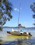 Hi All, further to my opening post. Trailer Sailers can start small with the original NZ designed Hartley 16 being a light and easily handled mostly day boat but with enough room for two to sleep under cover and with a boom tent live for short periods on board. These generally cost under $5,000. Next jump up whilst still very light to tow are yachts like the Catamaran Jarcat 6 pictured below. These are still exceptionally light to tow at under 1350kg on Trailer with camping gear on board and with a double berth and two under seat coffin berths have enough room to overnight a family with two children or a fair amount of gear for two on a multi day or even week trip. They are also pretty cheap to buy and equip at well under $20,000 and some much cheaper again. In this same price range are many quality mid sized fibreglass single hull yachts of generally elevated vintage. Many of these larger yachts fall into the over 2 tonne on trailer weight range requiring electro Hydralic Brakes. Most of these yachts are 2.4-2.5 metres wide and given a suitably capable towing vehicle these can be transported/trailed like a large caravan. The range here is huge whilst most of the yachts themselves are fairly old in both design and sometimes condition. Finally there are a range of large newer yachts which tend to cost $30-90,000 unless purchasing New where they are even more expensive. Opinions in the yachting community about the merits of various designs are often more strongly held I feel than in the caravanning/motorhome community and often based on sailing performance or offshore capability which have much less relevance for semi live on board Grey Nomading. The hardest trick I have found is to find a partner who likes messing around in boats and can tollerate being in a small space surrounded by water where escaping from each other is more challanging than disappearing off for a walk or similar.
