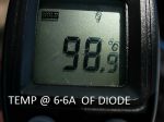 Below is a picture on how I fitted the diodes which I had to remove from the Jiffy box, to pull up, (upside down), into the open to measure the amps and heat