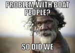About then the sheep arrived, and have been treasured ever since. It is interesting to note here that the Europeans always consider themselves vastly superior to any other race they encounter, since they can lie, cheat, steal and litigate (marks of a civilised culture they say), whereas all the Aboriginals can do is happily survive being left in the middle of a vast red-hot desert - equipped with a stick.