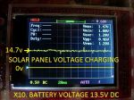 The screenshot shows a panel voltage of 14.7V at the regulator and 13.5V at the battery during charging. This voltage drop (1.2V) suggests that the MOSFETs have a much higher RDSon than specified in the datasheet. Maybe they are fakes?