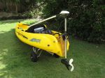 It was fantastic for tripping around lakes & estuaries.  A favourite was motoring up the river at Kingscliff ready for the outgoing tide. I'd go up past Salt Resort & then snorkel back to the mouth with the yak tied to my wrist.  A fantastic way to see lots of fish. Fortunately no Bull Sharks.   When I knocked up, I'd tie up & have a snack & cold drink.  Good on Lake Wivenhoe Dam too, to get across from Lumley Hill camp ground to Capt Logan Creek & then quietly paddle up to the limit of navigation.   OK when the dam is full.   Perhaps one day I'll get a replacement battery & enjoy it once again.