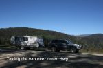 We've towed our camper over both Mt. Hotham and Falls Creek from Mt. Beauty to Bairnsdale without problems and we've seen loads of smallish caravans on the road.