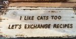Many years ago, when we looking for caravan/camper van/motor home After the bloke told us that he was a Chef, (he was a Frenchman) We inspected his camper van, and it had the following sign on the back I LIKE CATS THEY TASTE LIKE CHICKEN My wife went ballistic, the bloke could not get through to her, that it was a joke
