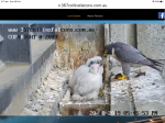 There are two nest boxes, one at each end of the ledge. The chicks are getting very mobile now and frequently change ends, pending weather.