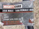 In USA you can buy them in the RV stores and in their equivalent to Bunnings. Need two to plug into a normal household outlet when parked in someone's driveway. 50amp down to 30 amp and then 30 down to 15 amp. Called dogbones. There is a a warning on the packaging about not exceeding the loading.