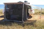 The first was this 'fly cover' over your awning although I got the impression that it could be left in situ & rolled up with the awning. We all know how effective a fly tarp over a tent is. This is a great adaption of the principle.