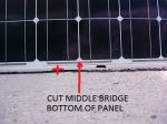 GTI Solar systems are available very cheap or free these days, when installers upgrade they wont use the original system. I was given a 2KW system & only had space on the shed roof for 1.5KW eight panels. This left 2 spare panels, so I decided to re configure them to give about 22V DC. One I made into a portable panel. Heres some pictures of how I did the alterations, using a small Dremel & grinding carefuly through the back of the panel, & splitting the connection in the middle of the string of cells. Carefully soldering wire to run up to the connection box, & sealing the conection with silicone.