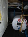 My guess is you are using 1.1kWh per 24 hours just to keep the tank hot & some more without U trap & uninsulated pipe.