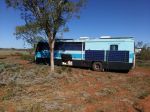 Then when we were isolating at our son's Bush block among the trees there wasn't much solar to be had so I bought 2 x 300 watts to ground deploy which helped a bit. Trouble is where to carry them when on the road. Ended up strapping them to the side of the bus and by parking the right direction, I can hook them up and harvest nearly as much per square metre over the whole day as the ones on the roof. Doesn't look so pretty but neither does the rest of the rig