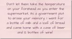 I've been asked to take my tin foil protection head gear off to have my temperature (memory/mind adjustment reprogram) check. When I tell them I refuse to be put under the control of others, they look at me, and just wave me through.