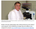Do you have a link for this ? A wider search will reveal more information and probably a different interpretation. Collingnon supports (or at least did) the use of masks in many cases and has listed the benefits of masks. He had spoken about the dangers of complacency, lack of social distancing and anti-lockdown protests. I'm not exactly sure what lightning strikes have to do with Covid-19 but two things come to mind. 1) a lot more people have died from Covid-19 in this country than have been struck by lightning in the same timeframe. 2) I've worked with more than a few professors. Some fall into the nutty category. None if them would willingly walk into a field during a lightning strike. It's a meaningless comparison, probably taken out of context.