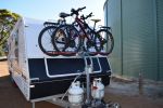 We have a Thule bike rack mounted on the generator and BBQ box on the drawbar .The van is an offroader so is quite high but easy  enough to put lighter bikes on and is out of the majority of the dust and mud The box is heavy duty and it does put more weight on your draw bar.