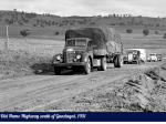 This is just South of Gundagai on the Hume Hwy in 1956 .... this truck ran into the rear of our friends caravan (completely demolished it ) but there were no injuries. (that is me in top right corner of pic.. I was 9 years old and still remember the incident well.) We were travelling North in a group of 3 caravans .