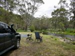 Next trip you might like to stop/camp on the Victoria River. It is a great little spot, about 3/4 km off the Hotham Road. The grassy area is situated under gum trees and there is an environmentally friendly toilet there together with fire pits. A short drive down the road, and beside the Victoria River, will take you to a viewing area for the Victoria River Falls. If you are fit enough you can also walk down from the end of the road and view the remains of the old Hydro station on the Cobungra River. The first Hydro station in Australia and used to power the nearby gold mines.