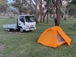 Hi All Clare and I picked up our Beyond slide on camper from Loch Victoria last weekend via a 2000klms round trip from Kangaroo Valley NSW. It fitted perfectly on the back of our new Isuzu NLS AWD alloy tray back 4500gvm truck which we weighed on the way down at 2,740kgs with 180kgs of us on board 70 kg of fuel and 60kgs of tools, mounting hardware, clothes and stuff. It fitted very well though took some time to load first time as whoever originally fitted the happijack legs screwed up the wiring meaning none of the buttons on the remote related to the correct legs making first time fitment fun! Thanks hugely to the prior owners Jerry and Christine for their assistance and especially to Jerry for fitting the two extra timber rails to the existing ones underneath our mutual measurements had calculated was needed to allow the overcab bed to clear the truck cabin. Such a lovely couple and very sad they had never had a trip with the camper but looking at it on our truck I feel it would have dramatically overloaded the it single cab Ute despite its suspension uprating. Ultimately I will mount the camper a little further back after fitting a tray width 50Cm deep X 1 meter high alloy storage box to the front of the tray. We returned via the Princes Highway around the coast giving us a variety of surface conditions, twisty roads and gradients and it drove superbly without much body roll at all despite my enthusiastic driving. The ( very quiet ) exhaust braking was just enough to take away the need to brake at all down most hills and we were able to maintain the speed limit at most times. Despite this moderately enthusiastic driving it returned just under 14liters per 100klms. Clare also drove it for about 2 hours despite no previous truck experience apart from her few hours driving the unloaded truck on our Inverell to Kangaroo Valley purchase / pick up trip back a few weeks ago. I have temporarily strapped the camper on with 3x 2.5 tone rated ratchet tie down straps and I am researching the best solution to this requirement. Any thoughts out there? On first impressions I think our travelling solution may be perfect for our wide variety of proposed adventures ranging from some extreme stuff like hoping to kayak sail Lake Eyre, trailer sailing the Kimberleys and camping in Cape York to all the more regular slightly off the beaten track destinations.